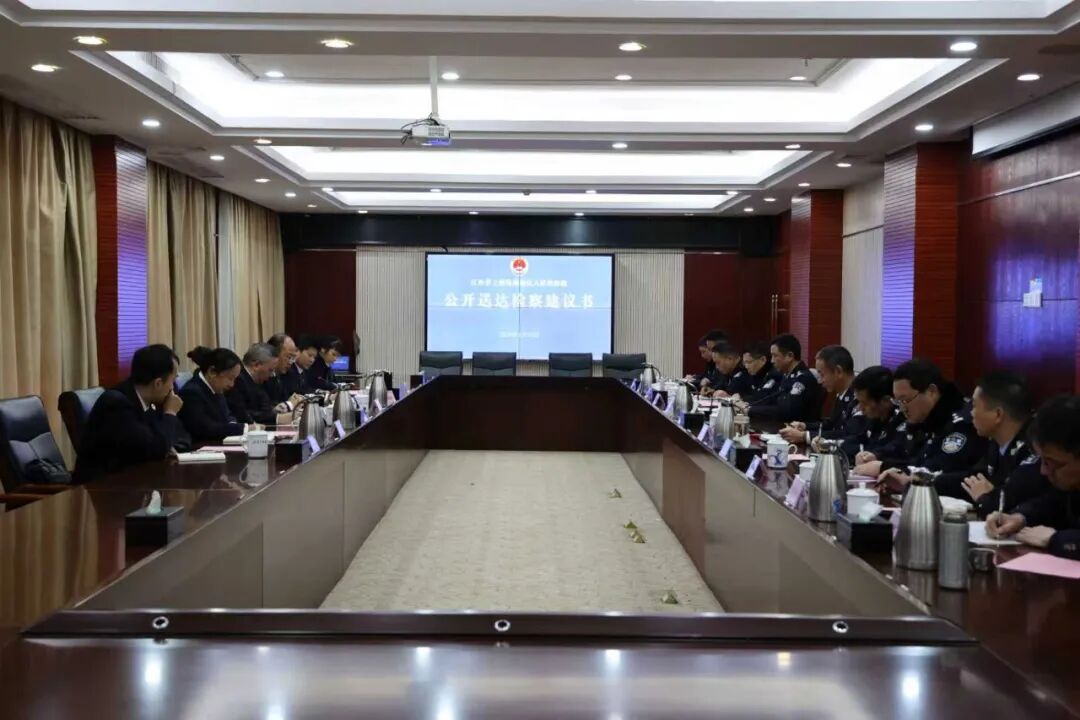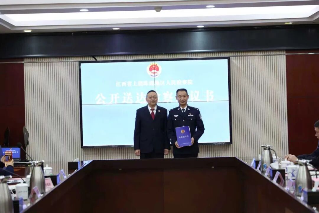 2026年1月29日,珠湖地区院分党组书记、检察长周印军带队赴饶州监狱,就未严格落实收监罪犯家属告知举行检察建议公开宣告送达,活动邀请省级人民监督员胡琪敏全程参与见证、评议,以程序公开强化监督落实,以精准建议助推规范执法。