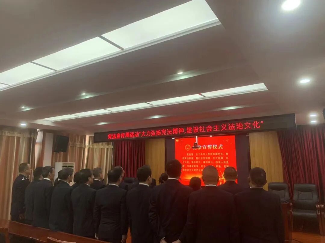 周印军检察长指出,宪法是国家根本大法,是治国安邦的总章程,宪法誓词,字字千钧。作为新时代检察人员,要把誓词时刻铭记于心,要把习近平法治思想和宪法精神落实到检察工作中,全体检察干警要一如既往讲忠诚,切实领会“两个确立”决定性意义,把增强“四个意识”,坚定“四个自信”,做到“两个维护”落实到检察工作全过程,始终做到对宪法和法律心怀敬畏,坚持把纪律和规矩挺在前面,正确行使党和人民赋予的权利,永葆清正廉洁政治本色。